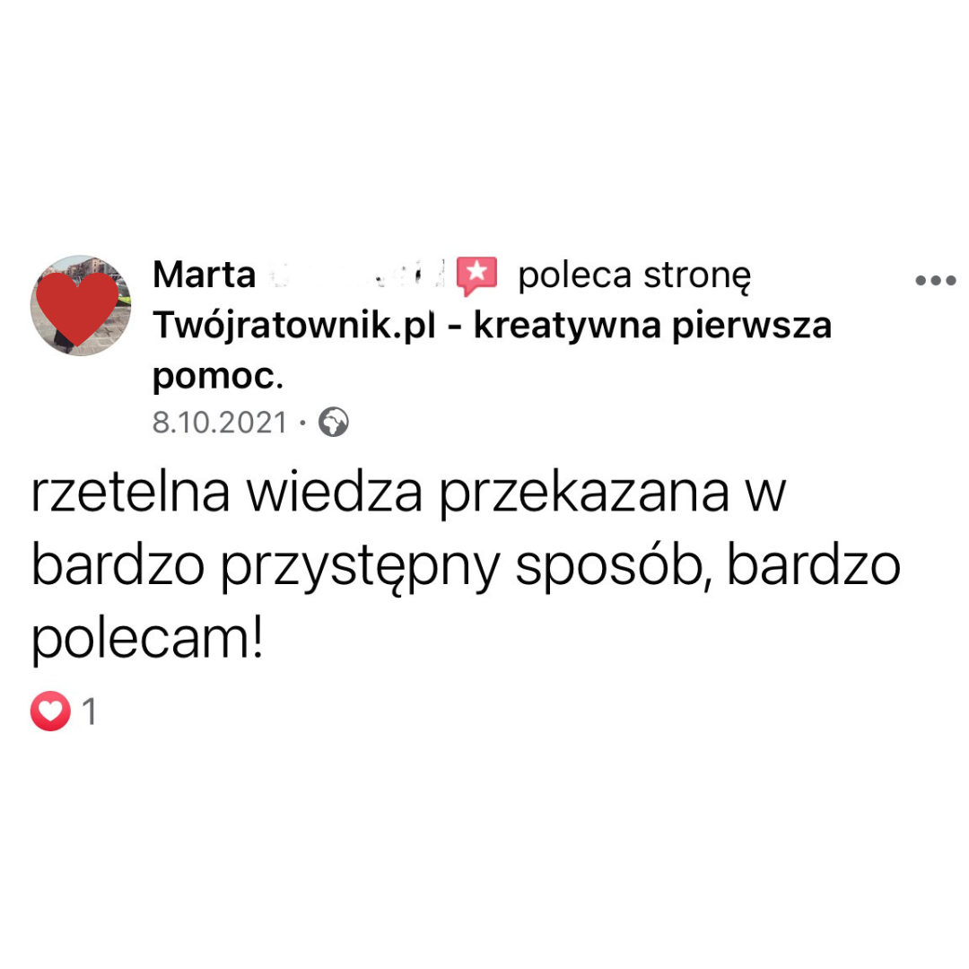 Specjalizuję się w tematyce dziecięcej, współtworzę nowe projekty, aby pomóc rodzicom zbudować wiarę w siebie, która pozwoli na bezbłędną pomoc dziecku w przypadku zagrożenia życia.